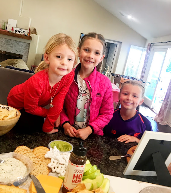 After everyone left, the kids enjoyed opening their Christmas bags from Grammy and Papa! Its such a tradition and we've done it for years-- since I was a little kid. Grammy makes it very special and the kids were so grateful. Pictured holding up their favorite item from their Christmas bag. This year the cousins all swapped names and sent gifts. Anna received a darling necklace from Olive and Grant received magnetic rocks from Julie. Adam and Noah sent Dane and Evelyn apple gift cards with candy. Christmas Eve after opening the bags, we headed out to drop off our gifts for a family in our area that wasn't going to have a very big Christmas. We almost couldn't find the house and were about to give up and go home to search the address further, when out of the blue- the house appeared and we were able to do the drop! It was a miracle of sorts and we were all so excited. We loved viewing Christmas lights with the Kuletos and Millers- an annual tradition, though we dropped the gift exchange. We had the cocoa and the gingersnaps and that was all that mattered! I was relieved have finally packaged up the gifts for all 10 girls at the office ! Blake said his Christmas party went well and the gifts were well received. Phew! I was thrilled by a beautiful gift my friend Amber gave me this year-- a HUGE cutting board for all of my appetizers. It was such an amazing gift I could hardly believe it! A highlight of my Christmas!