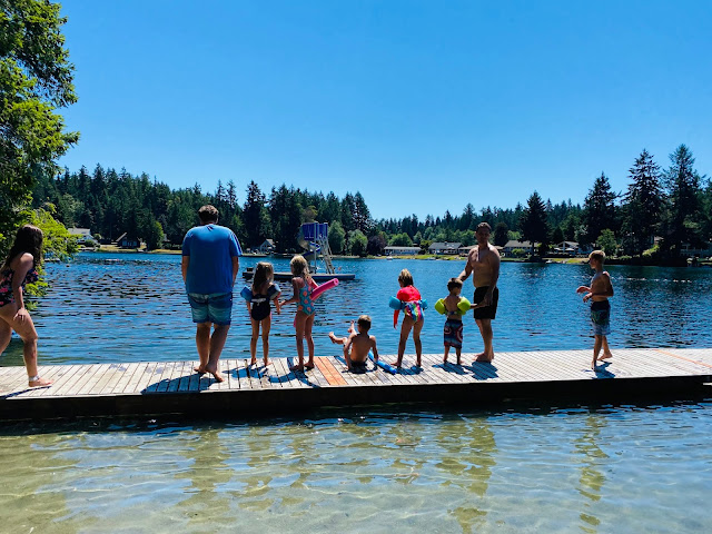 On Monday, we all boarded the ferry for The Ol' Swimming Hole! A summer tradition that we will never tire of! LOVED watching all my kids strong enough to swim over to the big slide and diving dock. Loved eating pretzel bread and cheese from the German deli. Loved watching the teens play cards on the ferry and watching the kids look for jelly fish over the side of the boat. Fun day.